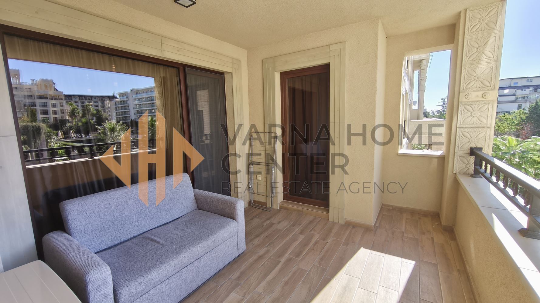 Varna Home Center предлага за продажба луксозен тристаен апартамент в престижен затворен комплекс, разположен в курортен комплекс Златни пясъци, само на няколко минути пешеходно разстояние от морския бряг.